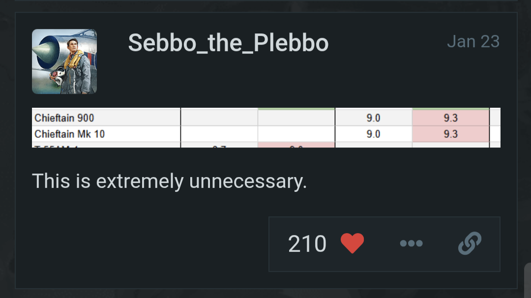 You’re not wrong, lately the uptiers seem brutal no matter what BR I play. 7.0 = 8.0, 9.0 = 10.0 etc. I will say that the only way to have some peace and quiet is to wind up with a “botfly” special task, then you will be struggling to get into uptier situations… and yes, I think this is deliberately done by gaijin, and its a pretty crappy thing to do to your player base in my opinion. There should be a way to control the level of uptier you are willing to play. I’d propose the following along with corresponding penalties for the adjustments: