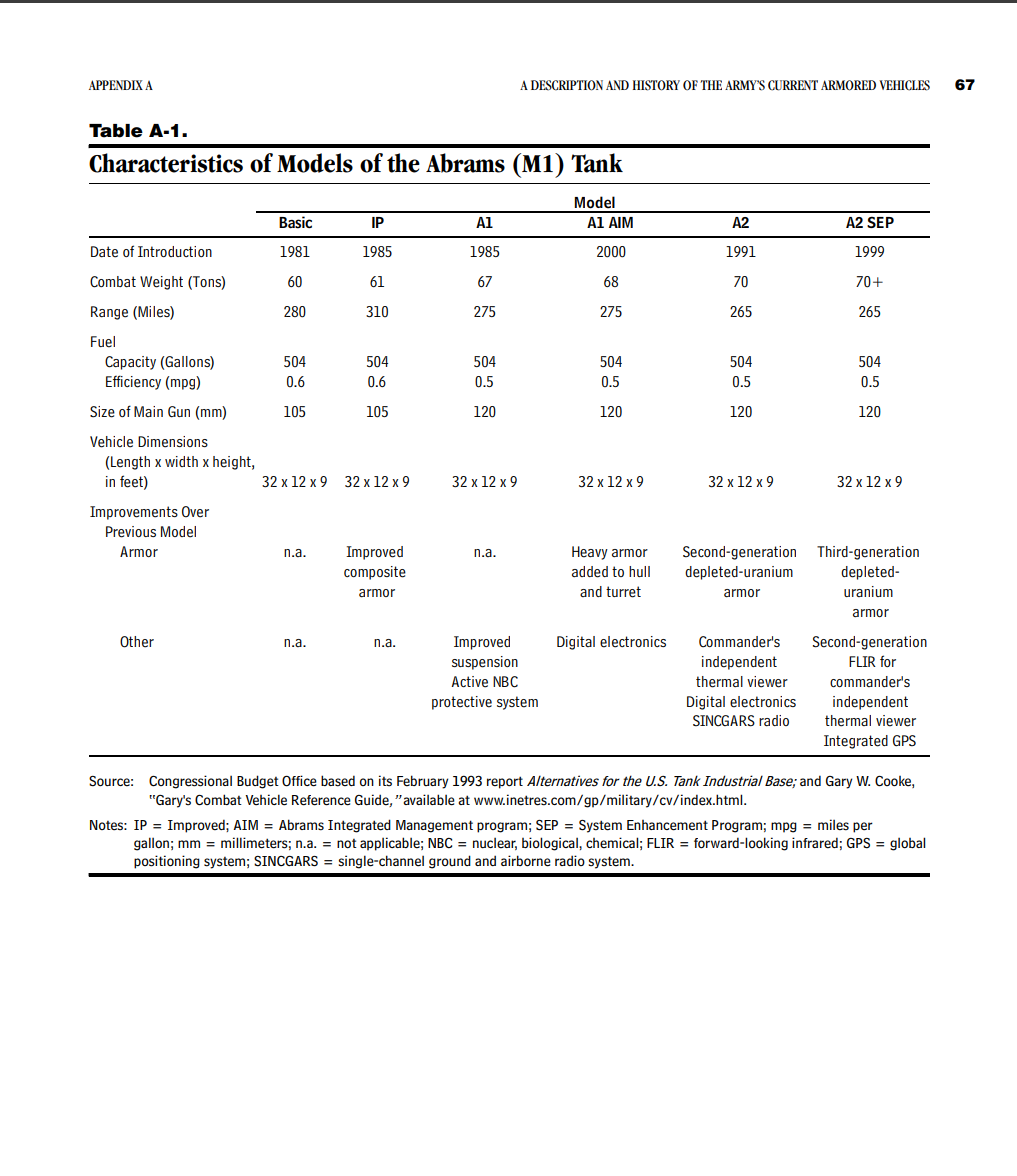 Table A-1 explicitly lists the upgrade for the M1A1 AIM and M1A2 as: “Heavy armor added to hull and turret.”