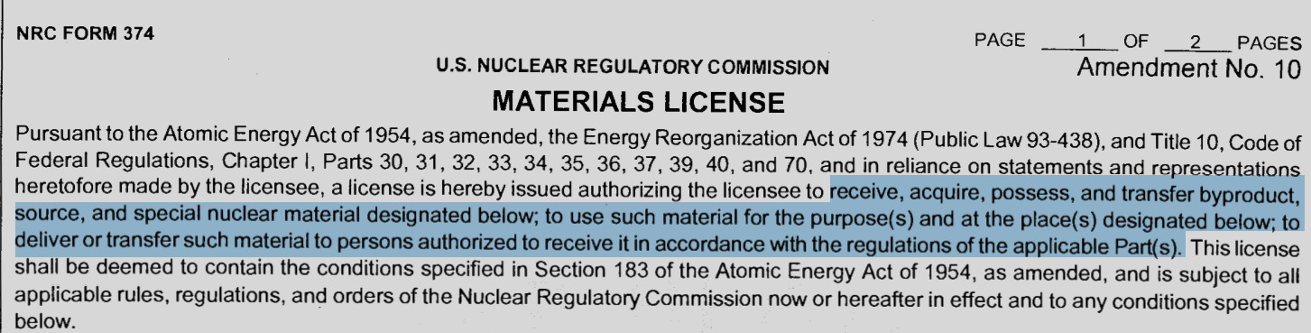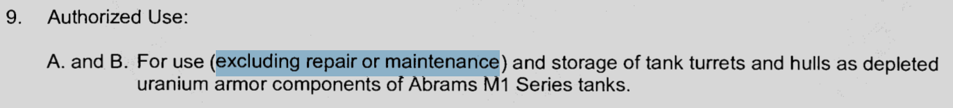 And regarding the license, look at the specific grammar in Item 9. It authorizes DU material utilized as Armor in tank turrets and hulls.
