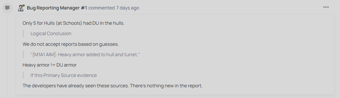 So those previous rejections were based on incomplete data. You can’t use a 5 Tank rejection reason to dismiss a Classified Inventory reality. The source provided in this thread invalidates the reason those reports were closed.