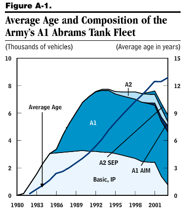 The graph provided actually shows the M1A1 AIM expanding in the fleet from 2000 onwards. It was not being phased out; it was the primary modernization path for the thousands of existing M1A1 hulls that the Army could not afford to replace with brand-new M1A2s. The AIM program was specifically meant to keep the bulk of the fleet relevant for decades.