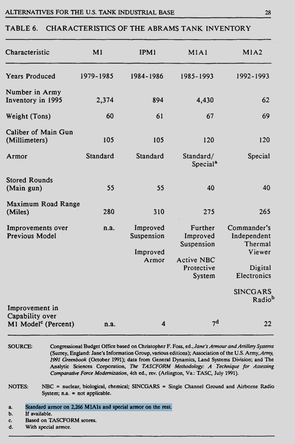 except your CBO report contradicts that because they list no armour changes from IPM1 to the M1A1, that change only happened with the AIM program with the introduction of HA.