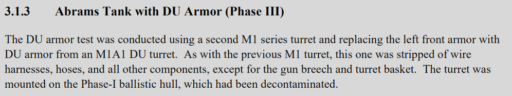 So it doesn’t prove the presence of DU in the hull in any way then. So no point in using it as a source. They even use the terminology that you have previously stated means the presence of DU in the hull; to mean just DU in the turret.