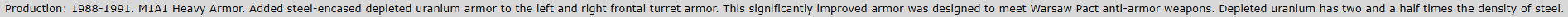 Second problem, feel free to visit the blog (which I’ve linked below) and try to find me any mention of the M1A1 AIM utilizing DU in it’s hull armour composition (spoilers: It doesn’t).
