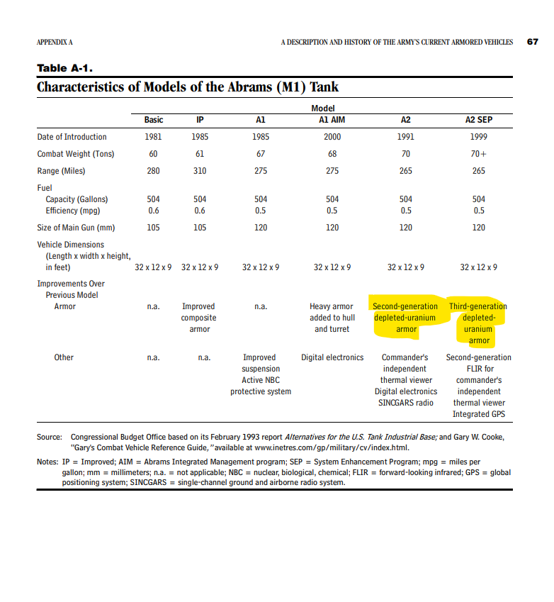 If your theory about it just being a descriptive word for weight was true, the CBO would have labeled the IPM1 as Heavy Armor too. The IPM1 gained substantial weight over the base M1. But they didn’t. They listed the IPM1 as Improved Composite. They only used the term Heavy Armor for the variants that the Federal Register and DoD confirm are radioactive.