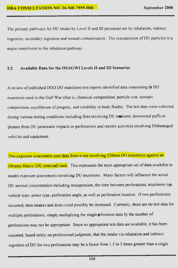 HRA Consultation No. 26-MF-7555-00D explicitly refers to the testing of an Abrams Heavy (DU armored) tank.