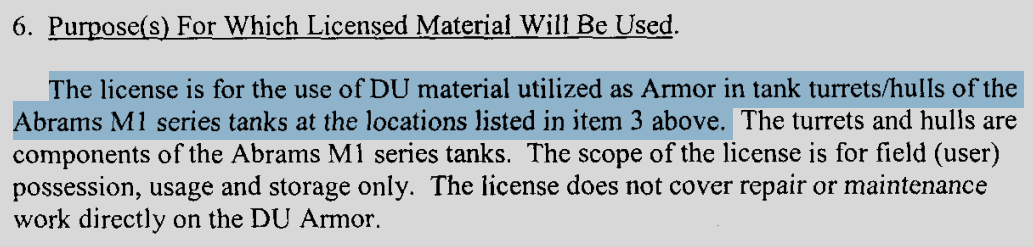 NRC License SUB-1536 was amended in 2016 to verify authorized use for “Tank Turrets and Hulls.”