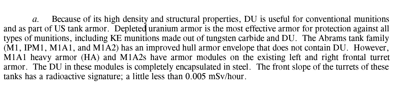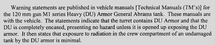 Federal Register: Heavy Armor System = Radioactive/DU In turret.