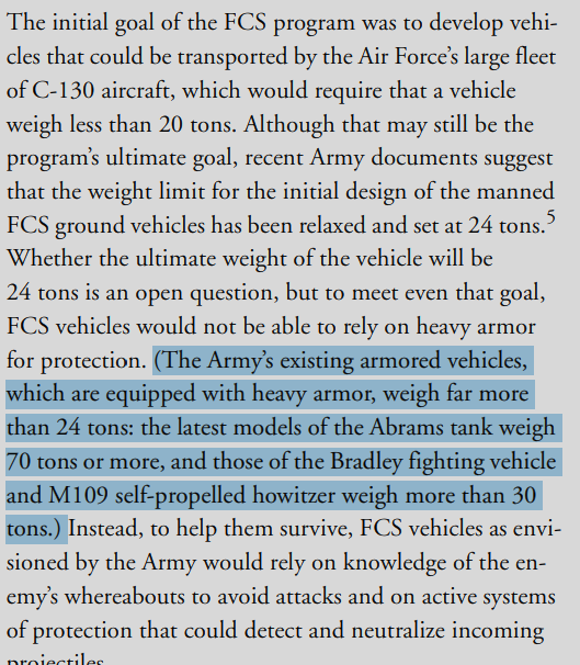 Also, calling the CBO Report “just a study” is incorrect. Table A-1 is titled “Characteristics of Models of the Abrams Tank.” It lists the physical properties of the existing inventory. It uses the past tense “Added.” It is a record of the fleet configuration, not a theoretical proposal.