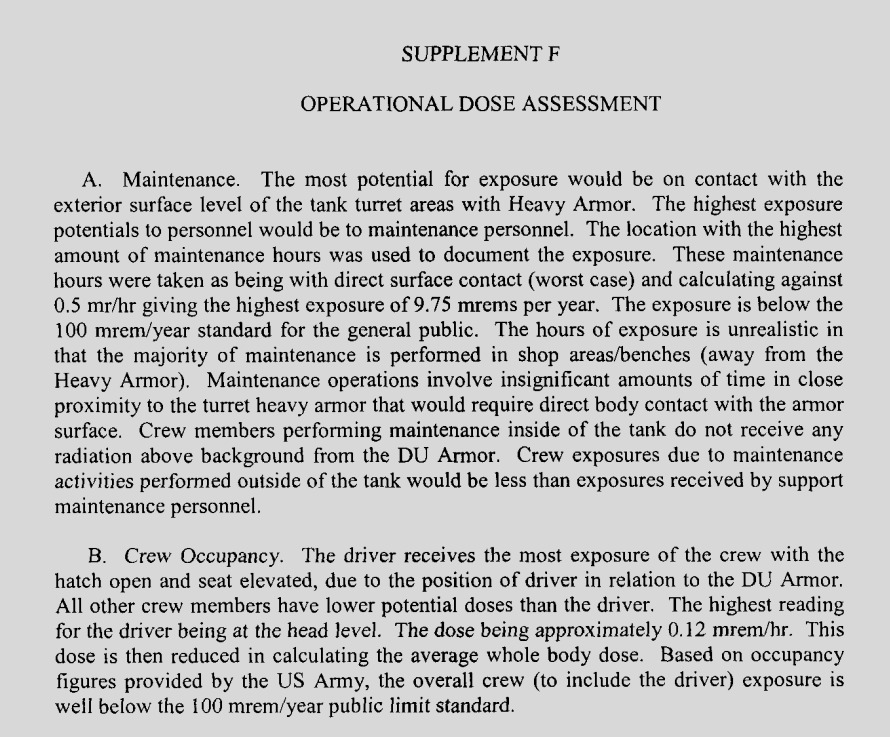 Section 3, Paragraph A: “…maximum potential exposure to radiation from the Heavy Armor System…”
