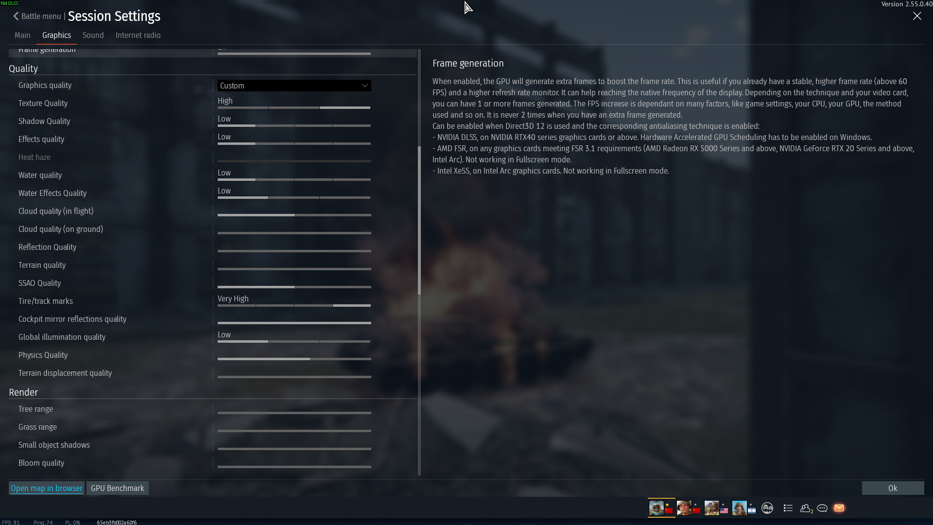 The issue isn’t getting “FPS”, it’s keeping it. The Game quickly bogs down in an actual match due to unoptimized elements like dead tanks. The disgustingly high amount of particles, even when dropped to minimum settings, makes my game drop to a slideshow when I dare look in the direction of a group of destroyed tanks. The Wind Physics don’t help this issue either.