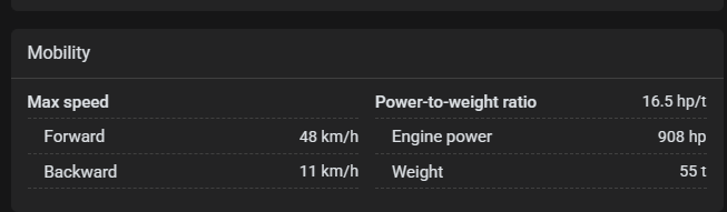 It’s possibly the second slowest (Western) MBT at top tier, next to the Merkava Mk.4B and SEP V1 / V2 (with add-on package)