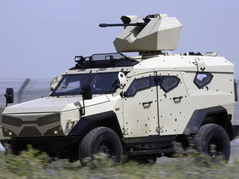 During this exhibition, Plasan also offered a posibility to add roof-mounted weapons which can be manual or remotly controled, but in this case, and the one we want to focus on, its the SAMSON DUAL RWS turret with the M230 30mm cannon.