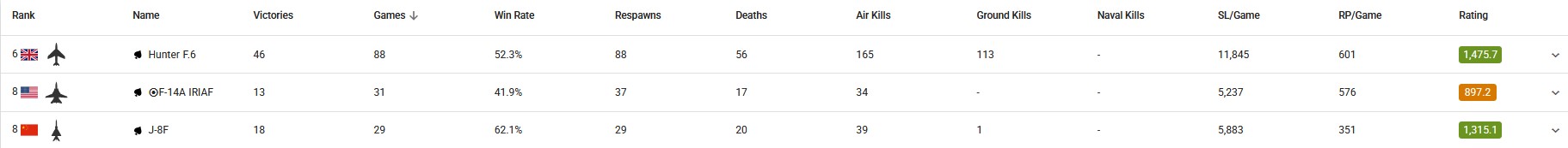 Some of these planes I only played to check something (like how much score I can get for quickly diving and destroying a base). So some of these battles took less than 3 minutes. I also never play for stats, so I didn’t care about them.