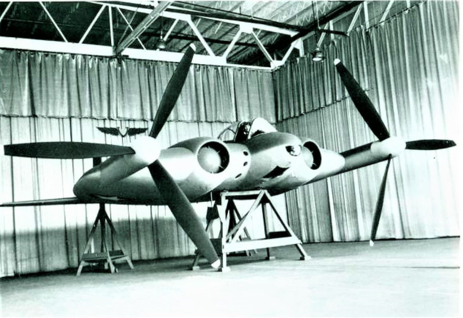 The projected naval fighter had a lightweight aluminum structure with Metalite/ balsa/aluminum sandwich skin, 20 times as much power that the V-173 and increased top speed/landing speed ratio from a typical 4:1 to 10:1. Using two Pratt & Whitney R-2800-7 radial engines, rated at 1,350 hp. each, was expected a landing speed of 40 mph, a top speed of 425 mph. and a zero-roll take-off with a 25-knot headwind.