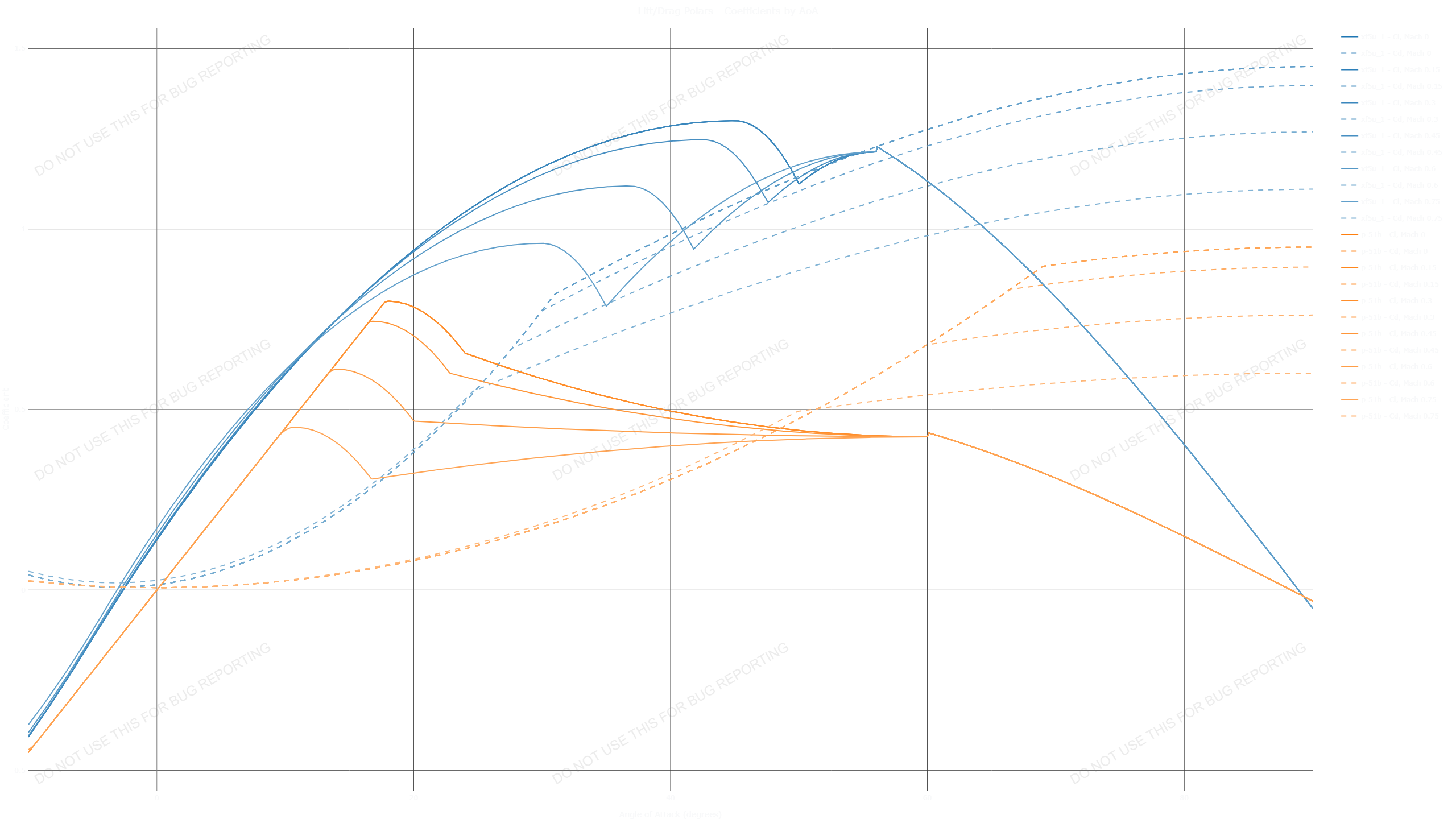 After trying it out in test drive i also noted that at low angles of attack the aircraft is unstable in pitch axis, since it pitches up when you slow down and pitches down when you speed up (a stable aircraft would do the opposite, the airframe tries to maintain airspeed by trading off altitude) meaning that with full real controls you have to be constantly fiddling with the pitch trim if you want it to not nose up or nose down violently the moment you take the hands away. The picture above in stat shark confirms it, as at 0 angle of attack the (virtual) rear horizontal stabilizer is producing lift, when it should be producing downforce for a stable aircraft, or be neutral for a perfectly balanced airplane.
