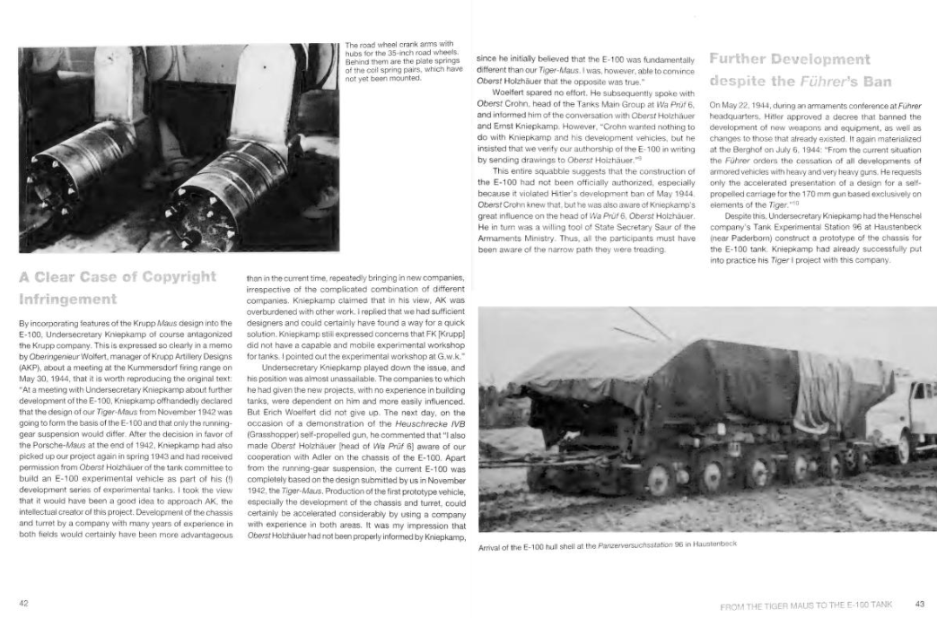 I: The Maus II turm was much more likely to be built. Maus II production was a serious effort undertaken by Krupp and Porsche to restart the Maus program and resurrect the contract for 135 vehicles. At minimum Maus hulls 8-20 could be completed from stock already delivered giving a minimum production run of 13 turrets. If the full production order was reinstated that would be a production run of 128 turrets. Appending an extra Maus II turm to the production order for the E-100 program would be a much more sound and expedient approach from an engineering perspective. The alternative would be the E-100 turm which would require separate toolings and welding equipment be produced to handle the different armor thicknesses for a single one off turret. As a result despite this being the intended turret, it would be far more likely that an extra Maus II would be delivered to Alkett to complete the vehicle despite the excess weight.