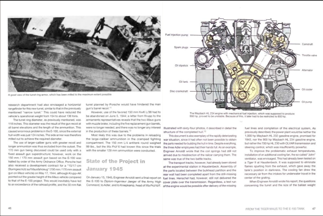 There’s an error here, the Maybach HL 234 only utilized fuel injection and not both fuel injection and supercharging. Supercharging the engine was abandoned for the HL 234 as it increased the output to 1000 which was not seen enough of an improvement to pursue. Not only this, while the HL 234 was capable of 900 horsepower the production version of the Maybach HL 234 ran at 850 horsepower as per waffenamt requirements as it was unstable at 900 horsepower.