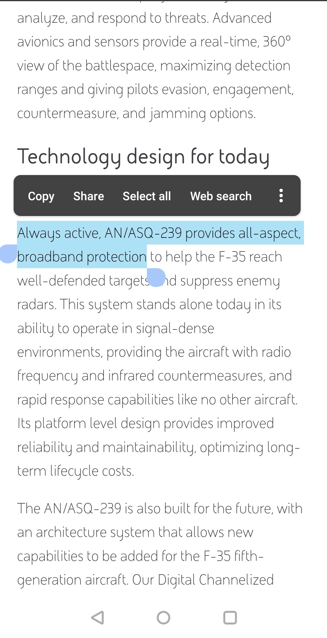 That isn’t what is said. Look closely, “defensive coverage from all aspects” “defensive capabilities that can detect and counter threats from any direction”. That is a far cry from all-aspect jamming.