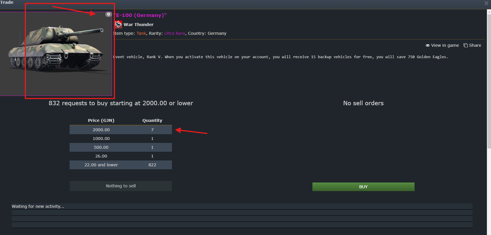 The E-100 is the only heavy tank locked in market (out of market )and only way to get if you lucky is by playing the hardest tournaments in war thunder.