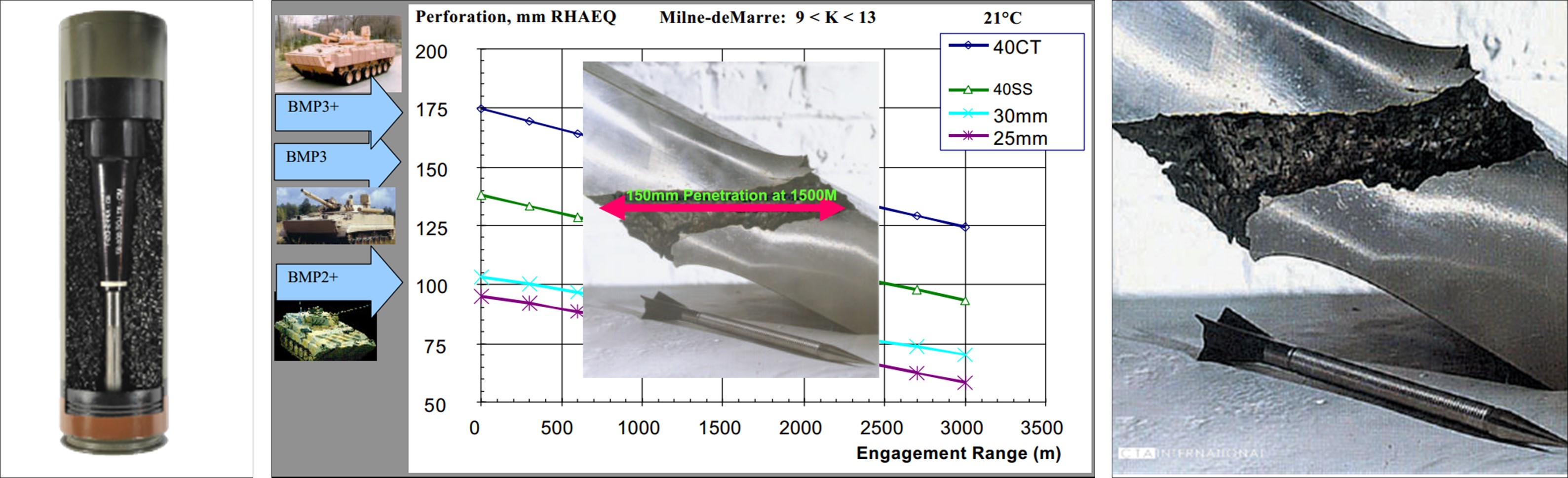 The CTA40 gun appears to be underperforming. It should be 140mm at 1500m.