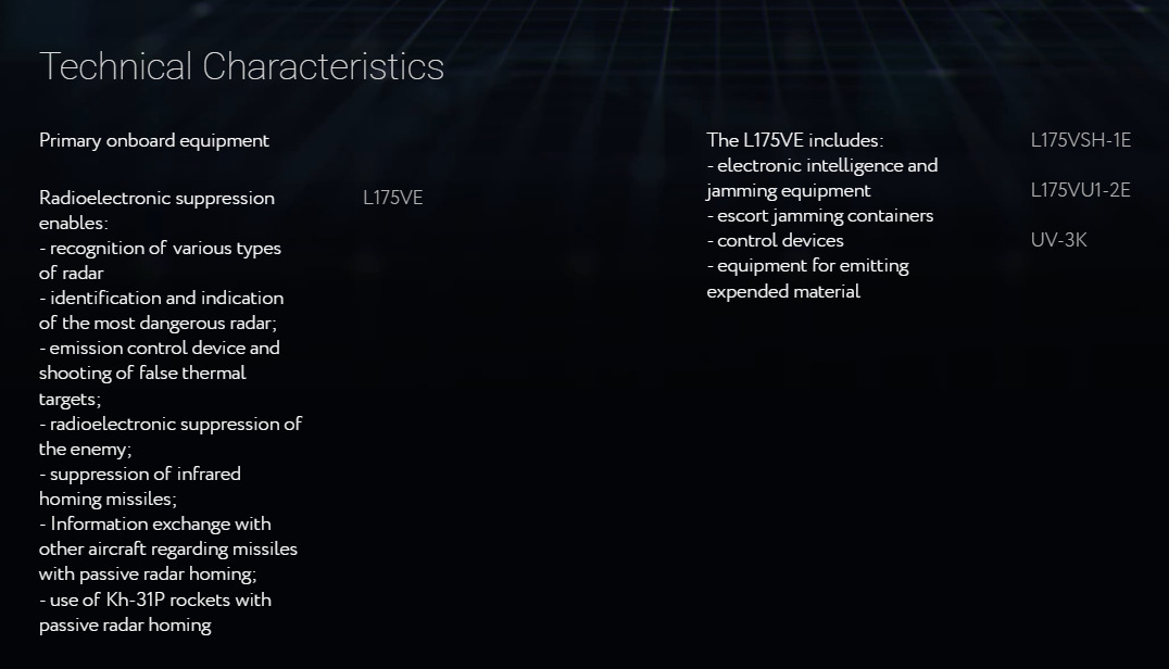 Capable of creating false radar targets and noise masks for air- and ground-based radars (e.g., AN/ALQ-187, AN/ALQ-218, “Khibiny”).