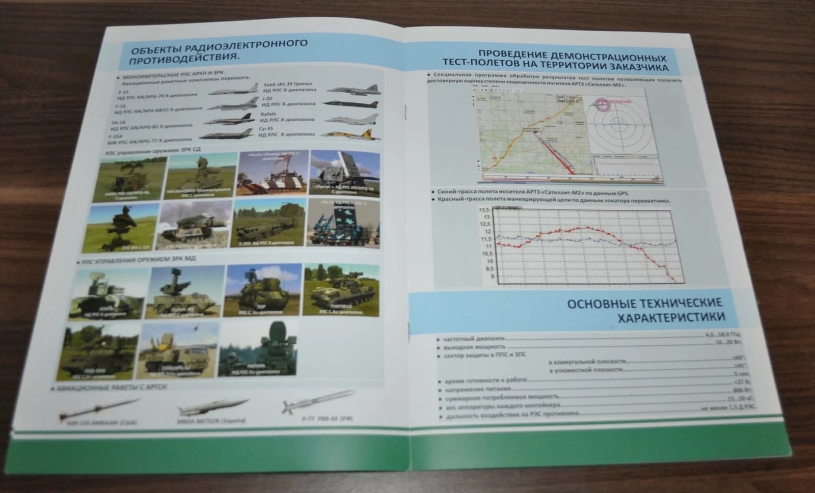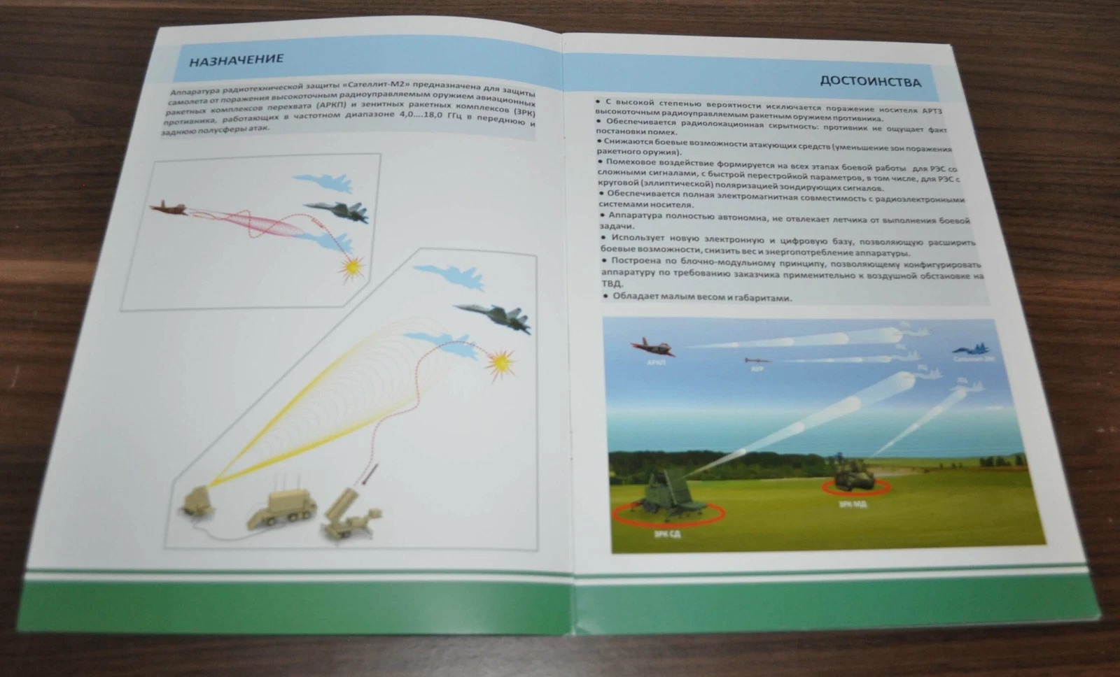 The “Satellite-M2” radio-electronic protection system is designed to protect aircraft from being hit by high-precision, radio-guided weapons air-to-air missiles (AAMs) and surface-to-air missile systems (SAMs) operating in the 4.0–18.0 GHz frequency range, both from the front and rear hemispheres.