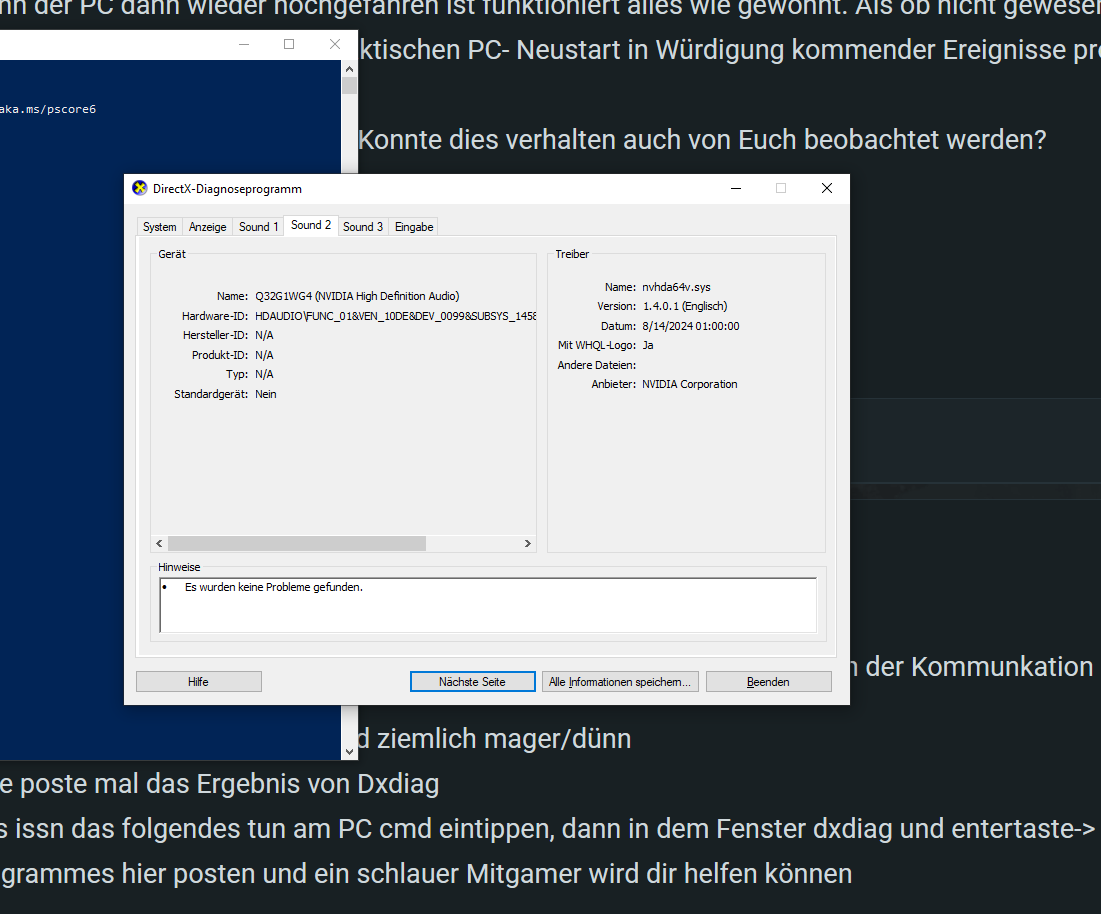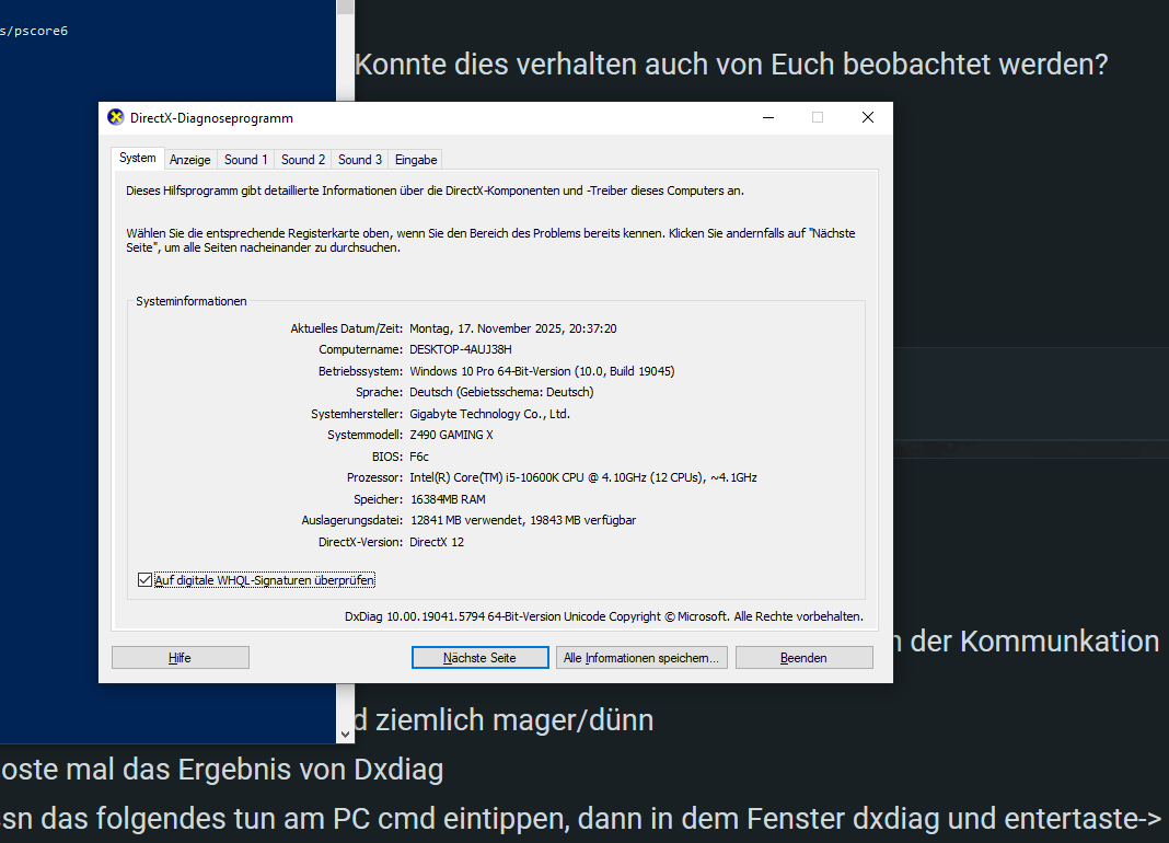 (für nächstes mal bitte den Button “Alle Informationen speichern” benutzen und die daraus resultierende Textdatei hier hochladen)