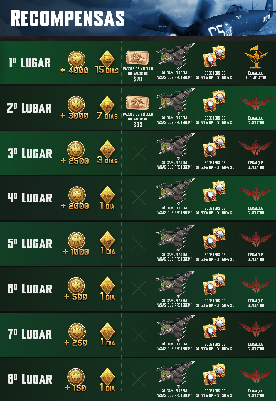 As oito melhores duplas ganharão esta skin do JAS39C Gripen Thai. Ela foi criada especialmente por Liechtensteinn para este torneio da comunidade.