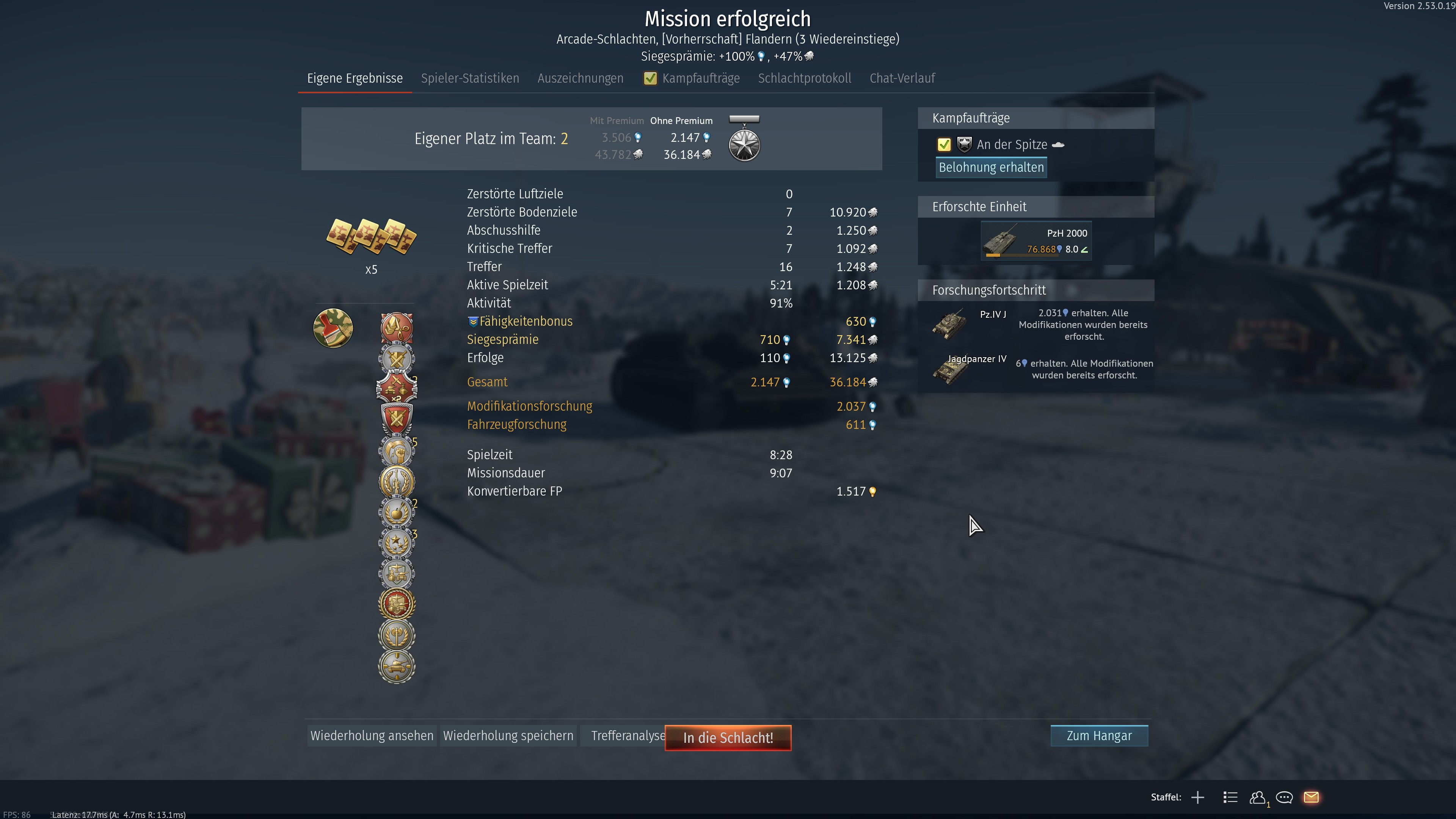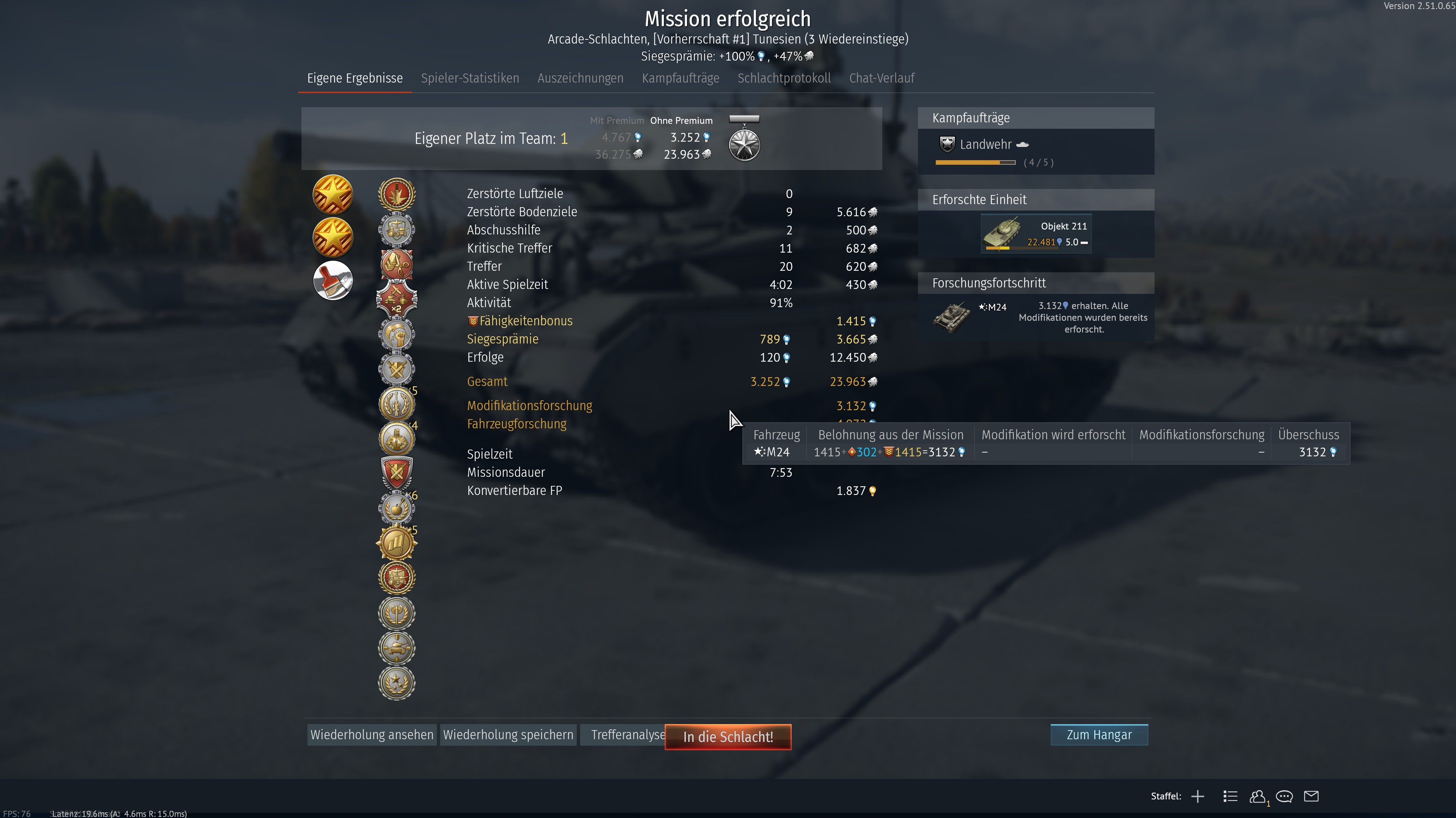 schade das der auf 3.7 is RB M24, mit dem panzer 8, 1xmit bombe und 3 mit dem jagdflieger, sollte ich öfters zocken, macht spass