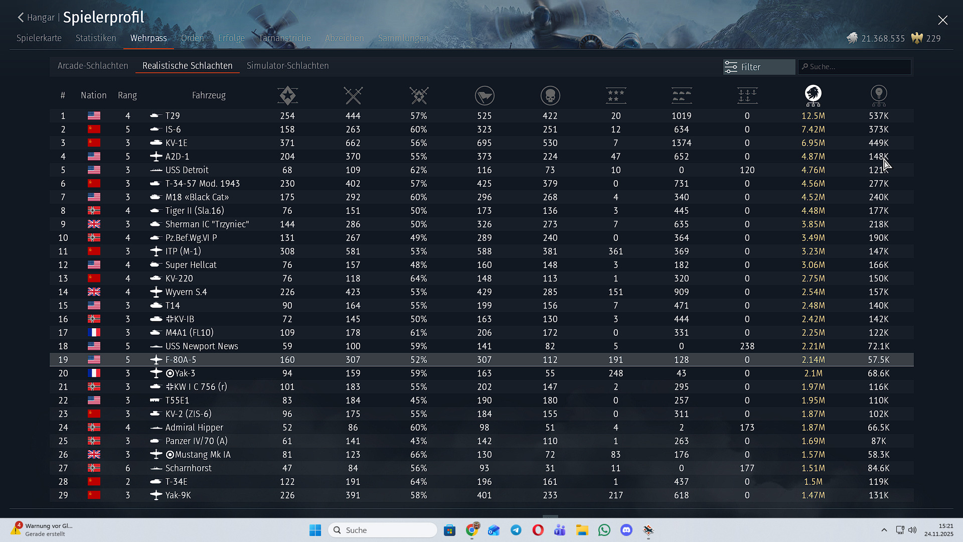 bei dir stagnation, stillstand immer nur die selben panzer brs, perfektion im geringen BR 3,3-4.7 anfänger klatschen mit sehr guten ergebnissen, Battlepass, Event und Fahrzeugsammlung aber nicht ausbau im höheren mittleren BR, geringe weiterentwicklung, aber in dem bereich AB Panzer Flugzeuge gut bis sehr gut nur AB zocker…spezialisierung