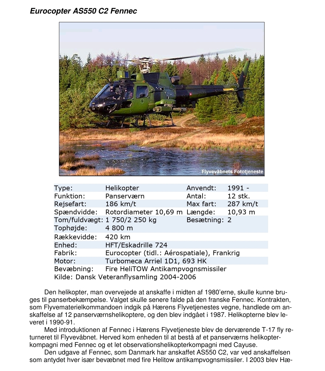 Eurocopter AS550C2 Fennec - Helicopter with 4x TOW missiles used by Denmark
