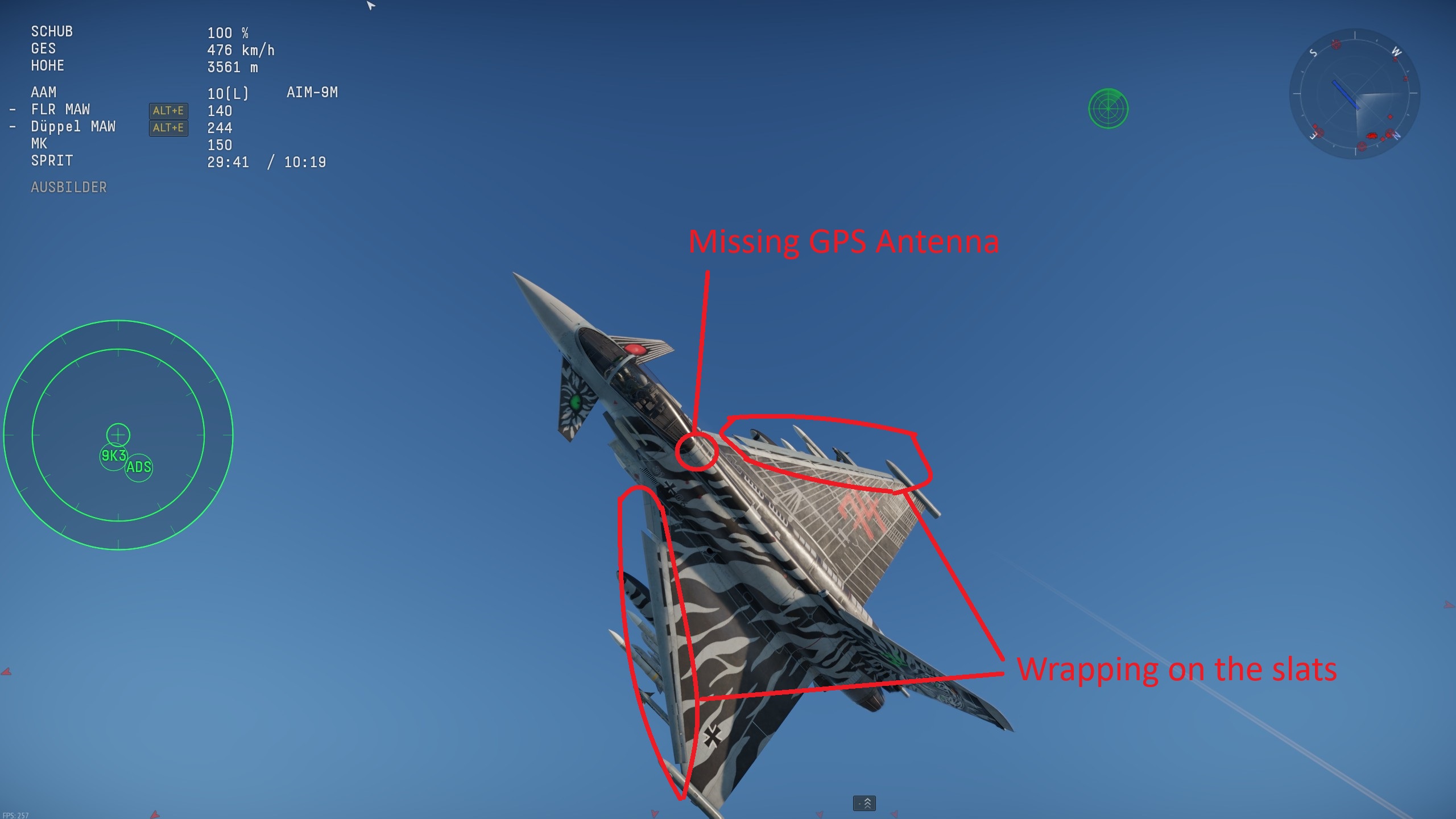 Also it has, like the stock camo, the wrong red towed decoy and missing GPS-Antenna behind the cockpit.