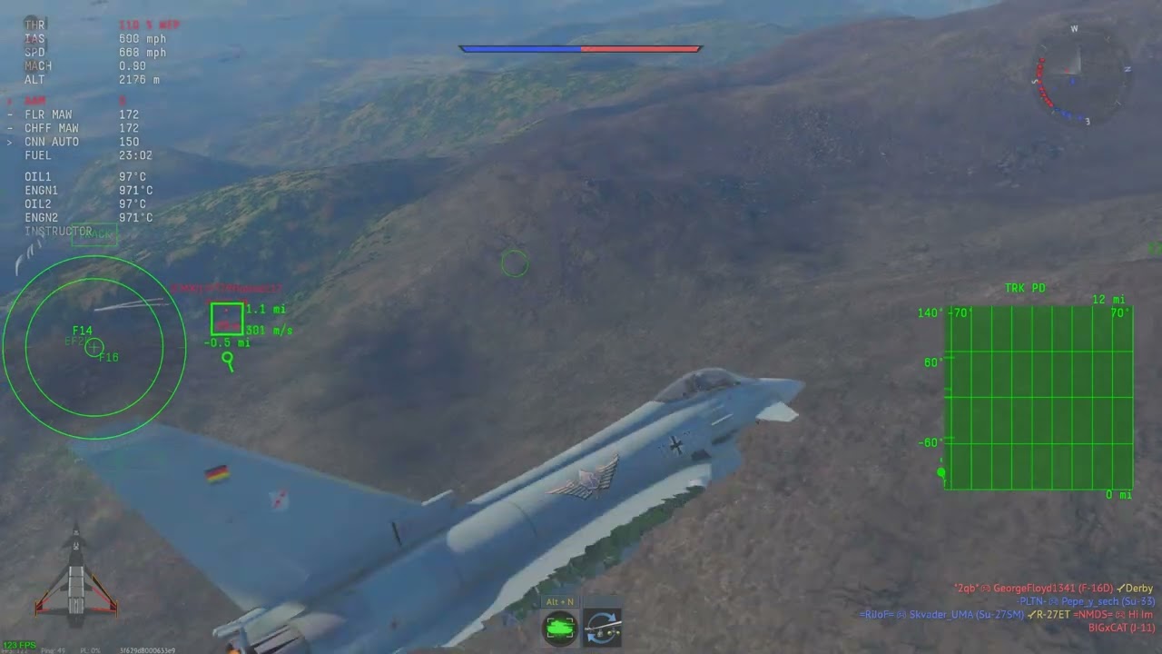 My Eurofighter is not fully upgraded but it seems to rip right as it says 14G usually.