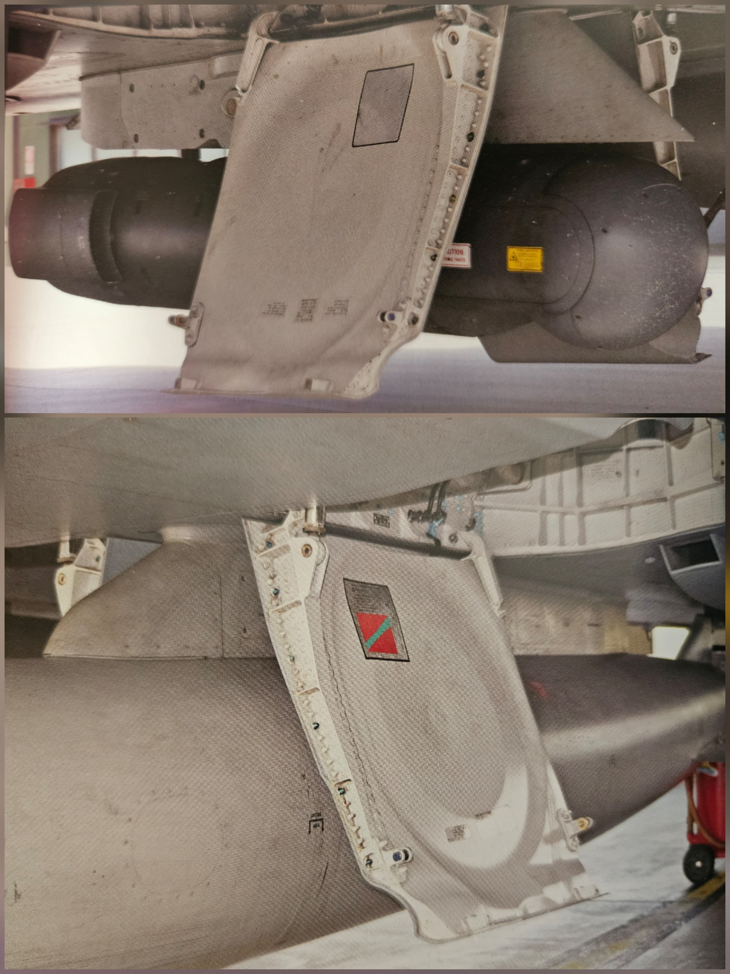Here you can see the difference in the example of the center fuselage Station. Real pylon vs tank. A real pylon also has sway braces which a drop tank clearly does’t have.