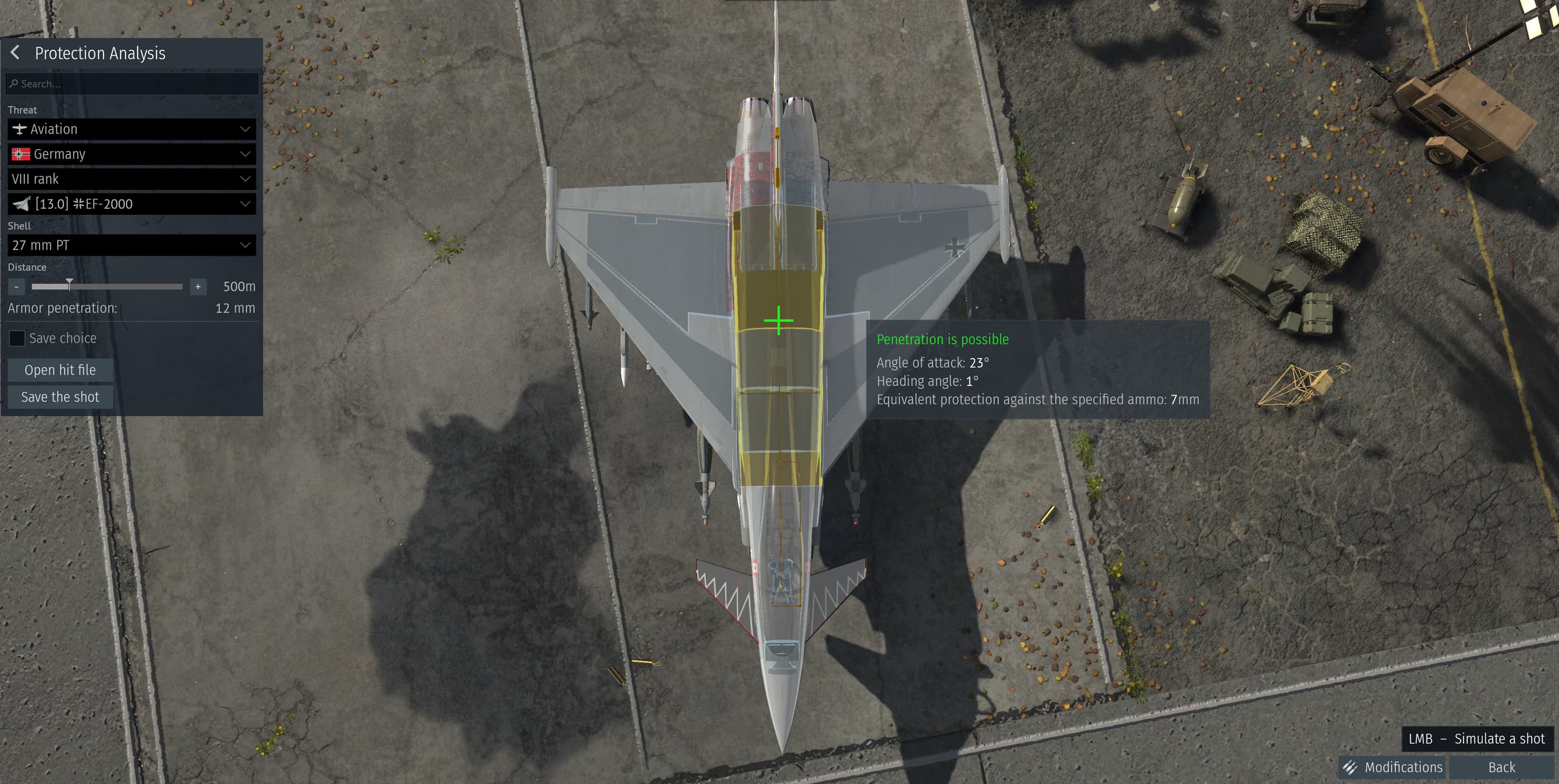 The PELE round in-game is a copy paste of the SAPHEI round and does considerable damage, while the P(T) rounds that take up 1/4 of the EFT’s cannon ammo do almost 0 damage in-game. There is no good reason the EFT have not been given access to the PELE rounds to replace their P(T) rounds yet, but gaijin seems to show no intentions to fix this in-game, so the EFT is cursed to have 1/4 of its cannon ammo be borderline worthless in-game when the fix for this is already available on another jet using the same gun.