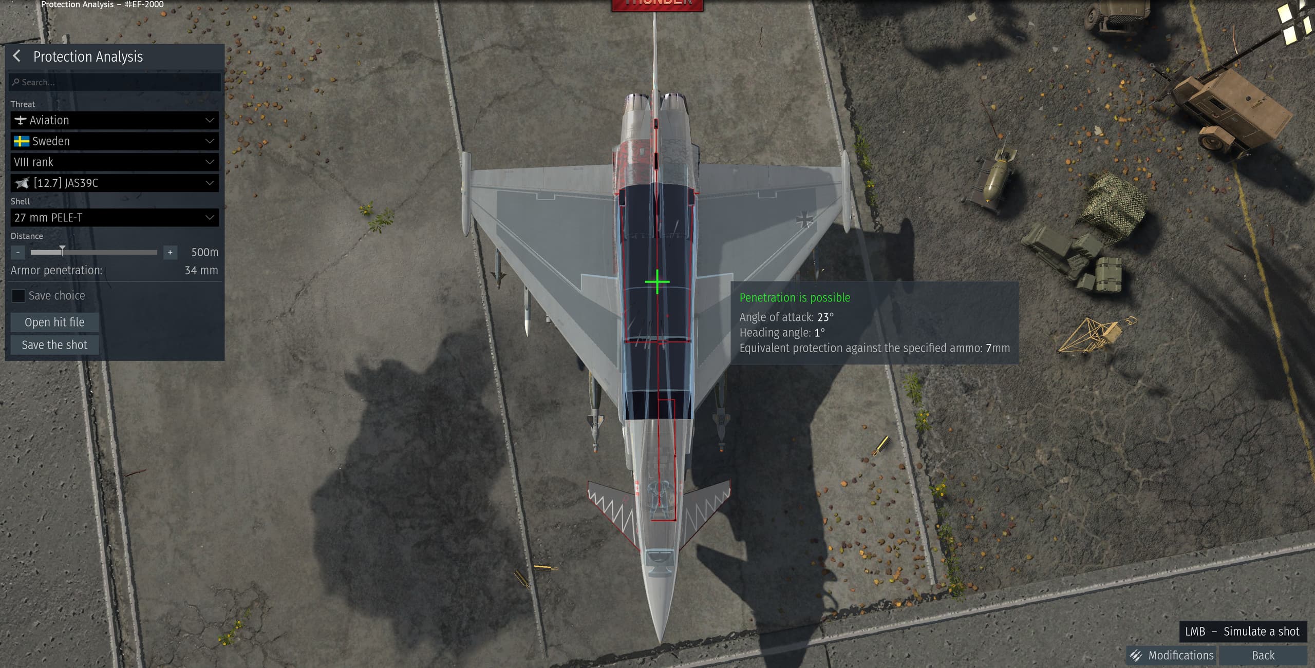 For those wondering what the context is and its relevance to the EFT, PELE is what the JAS39A/C have been given for their Akan M/85 (license built BK-27) instead of the practice tracer rounds the EFT’s have in all but their stealth belts.