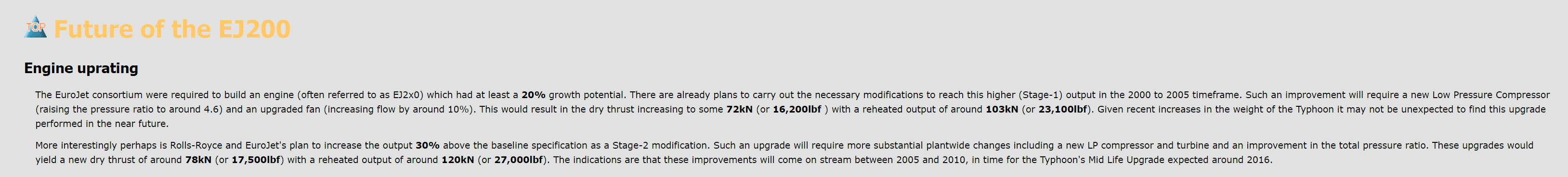 Wouldn’t be surprised if they’re keeping these plans on the back burner for war-time scenarios and implementing the new upgrades as needed, since the EJ200 already is a very good engine at its current form.