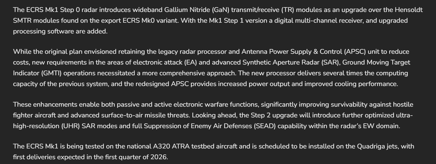 Only Tranche 1 has three columns, T2 onwards (which an AESA Eurofighter surely is!) has only two. That’s because the right column for NIS has been removed because it was never introduced/development was cancelled