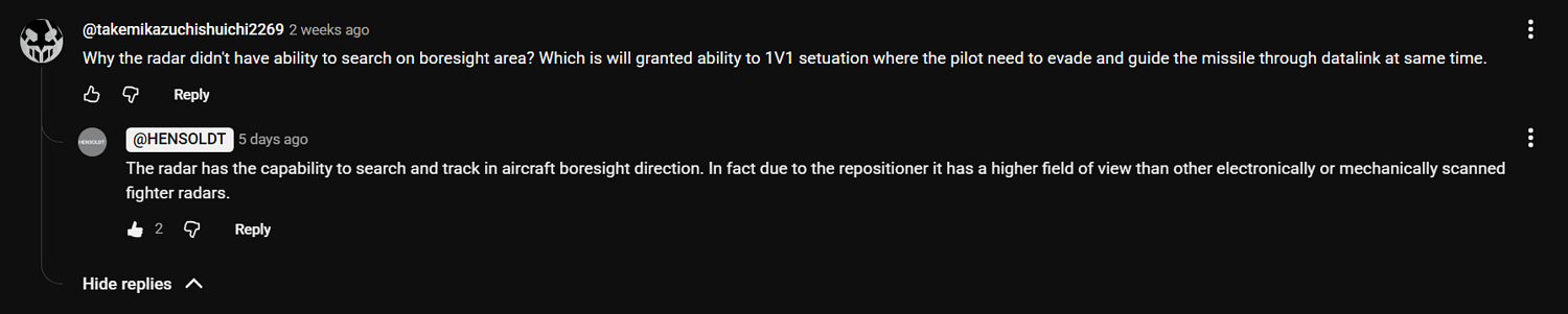This is what Hendsoldt replied on their youtube, not my post btw. (https://www.youtube.com/watch?v=hzYnxMxtJuk&t=)
