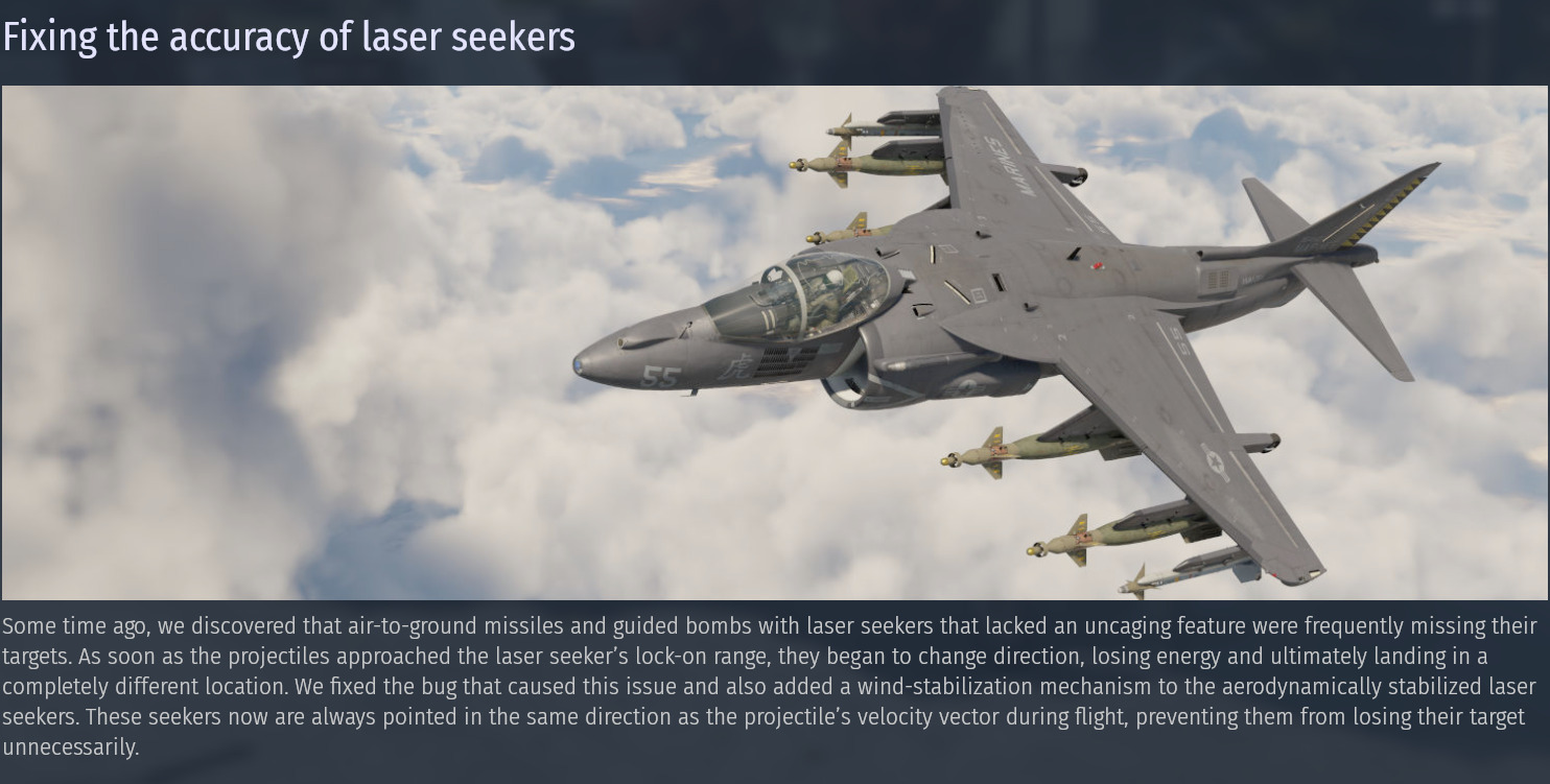 This change should affect Brimstone missile because it uses laser guidance, but I dont understand the extent to what they are describing. Does this change mean I can fire off Brimstones at a coordinate (w/ initial laser designation) and turn off the laser and have the Brimstone behave in a GPS manner?