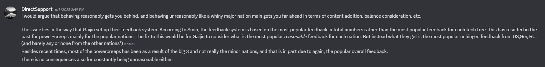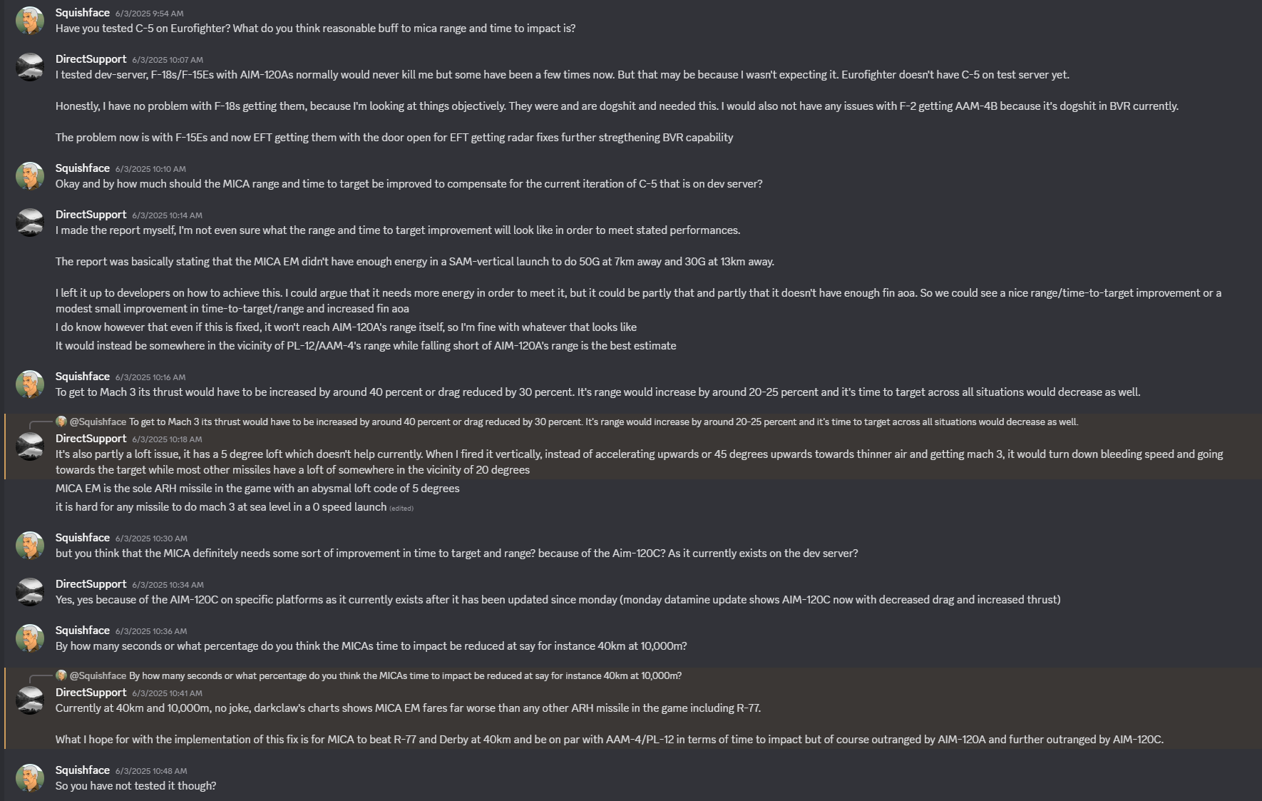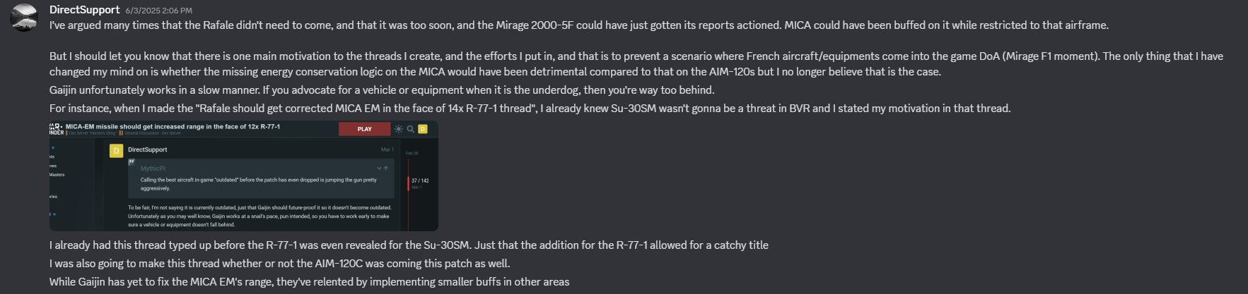 Let’s clarify something, it was never my intention to lobby you to support the thread. Whether or not you’d support the thread would have little consequences on the impact of the thread, and if you argue otherwise, I would point you to my comment in our DMs where I stated the MICA didn’t really need a buff at that point in time, why would I say this if the intention was to change your mind and claim MICA is suffering?