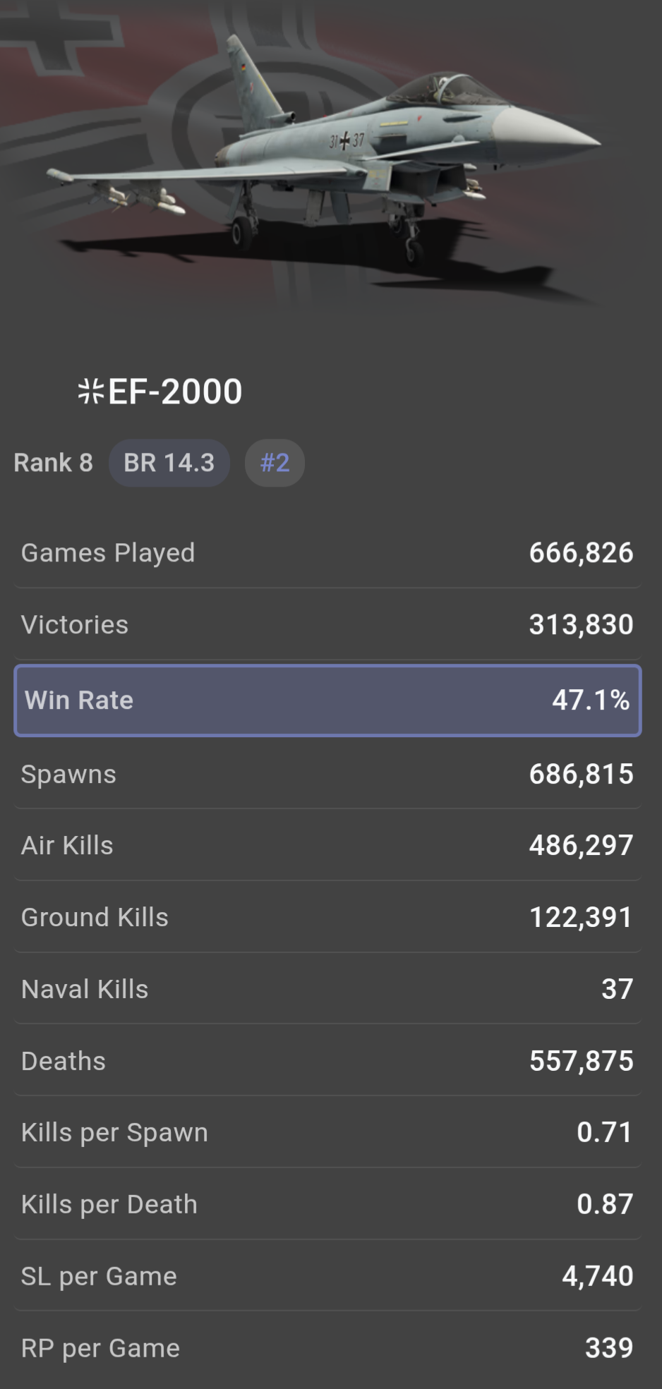 On release the Mirage 2000C was pretty rough, the earliest you might call French top BR air being strong was when MICA was introduced on Mirage 2000-5F. Before that it was just a spicy F-16 with less missiles.
