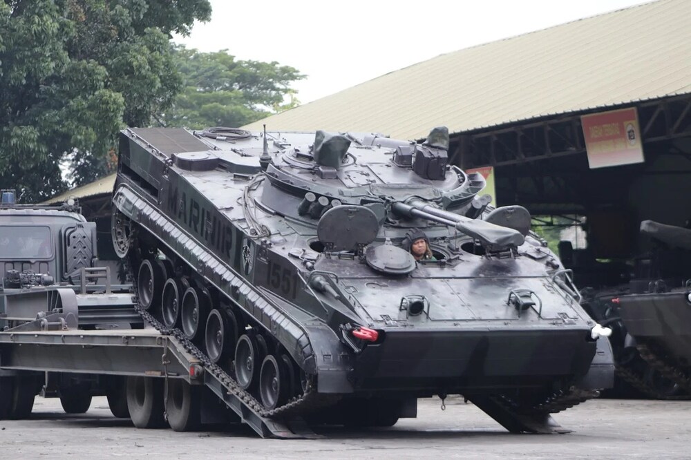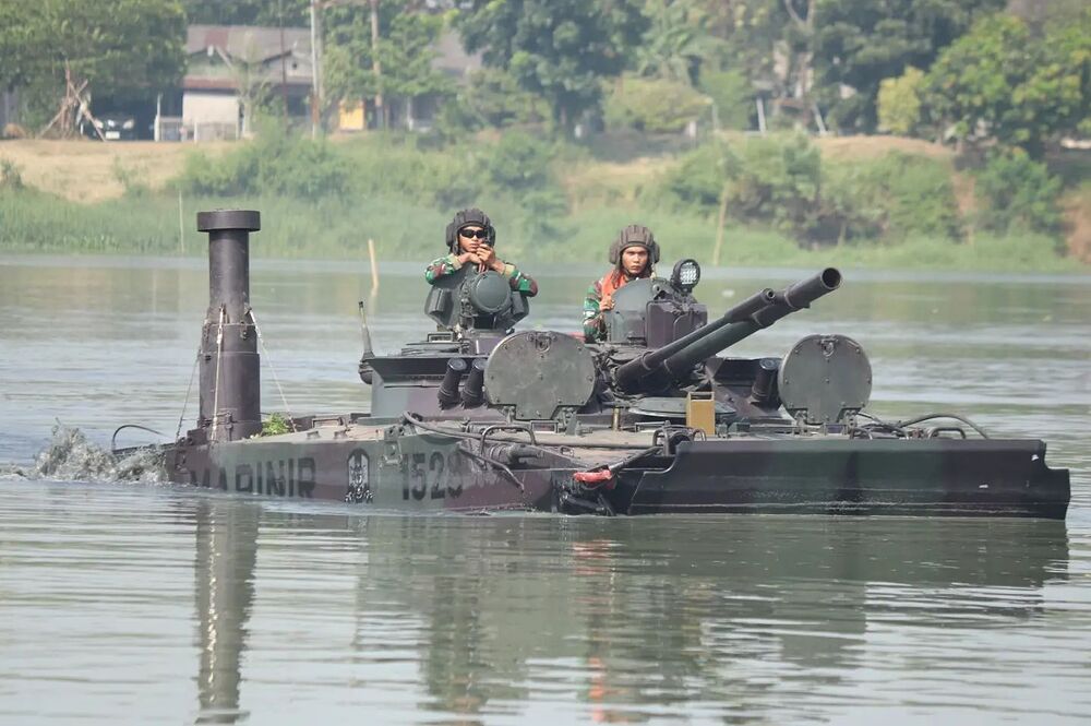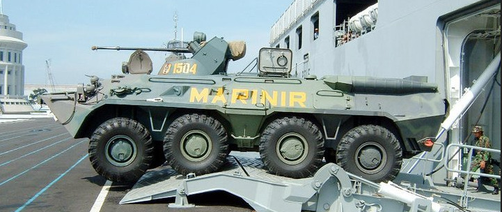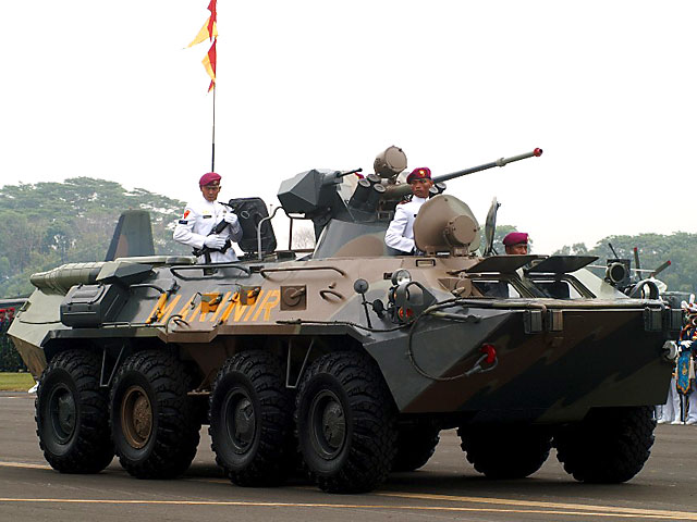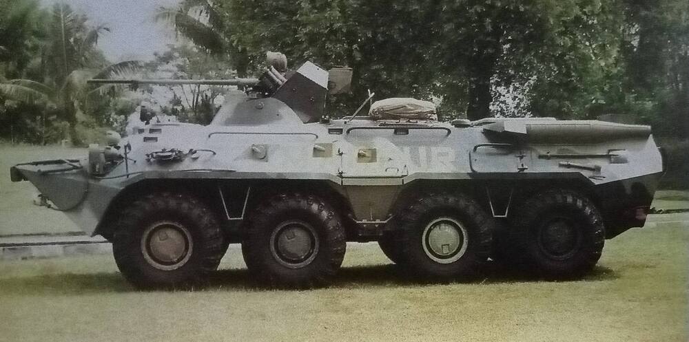 Indonesian version of the BTR-4, improved seaworthyness with external floats, 30mm Parus turret. ATGM launcher is there but the ATGM itself isnt purchased.