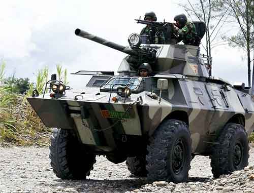 Standard V-150 Cadillac Gage Commando with the 90mm Turret. Used extensively by the Indonesian Army in combat operations. 58 units originally arived in mid-1970s through the “Giling Wesi” Project. 12 units were the 90mm L28 low-pressure MECAR gun (Officially called LAV-150 Mecar gun 90mm). Can fire HEAT, HEP-T (HESH) or APFSDS-T, although, just like the Scorpion 90, in Indonesian service the dart seems to be missing.