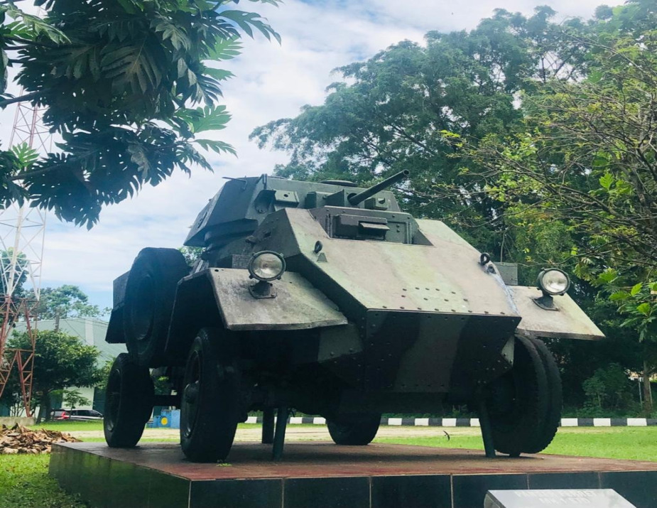 Hull of a Fox Armored Car and a Humber Mk.IV 37mm M5/M6 gun turret. Originally used by the Dutch, then inherited by the Indonesian Army. Difference from the Humber can be seen with the lack of tow hooks near the front fenders on the side of the hull. Another key difference is in the headlights, the Humber’s headlights is much closer to its hull compared to the Humfox