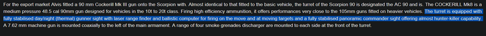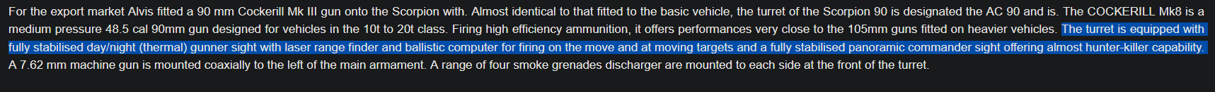From what I gather the Scorpion 90 came with Gen 2 thermals, but they where prone to vibration issues and blurring, so mounting to the gun might have been a low cost/risk testing programme?