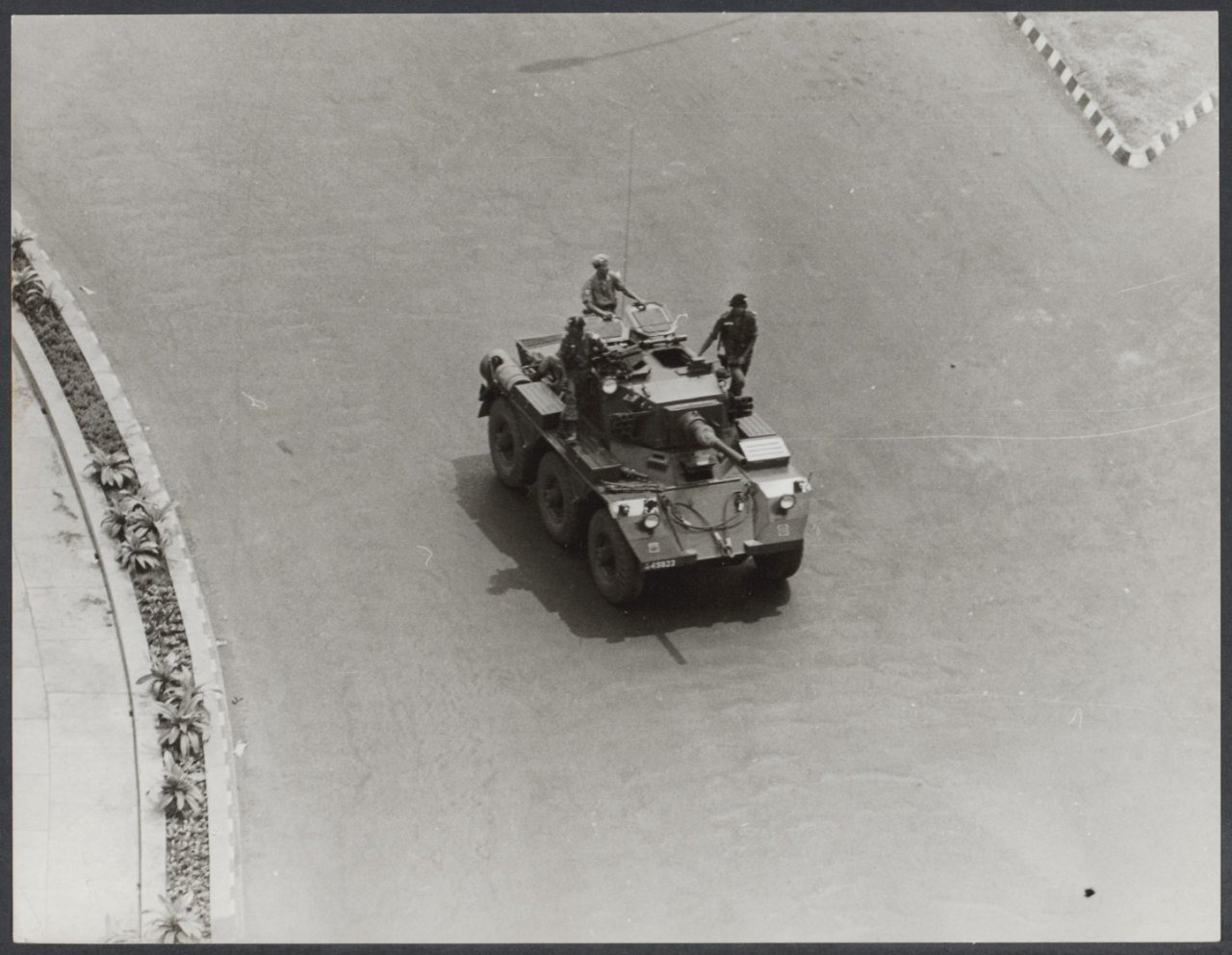 Image taken at Selamat Datang Monument in Jakarta right after G30. When the Saladins were “New” they used to have those 5 numbers on the front right fenders rather than the modern square TNI plates, not often you get to see it