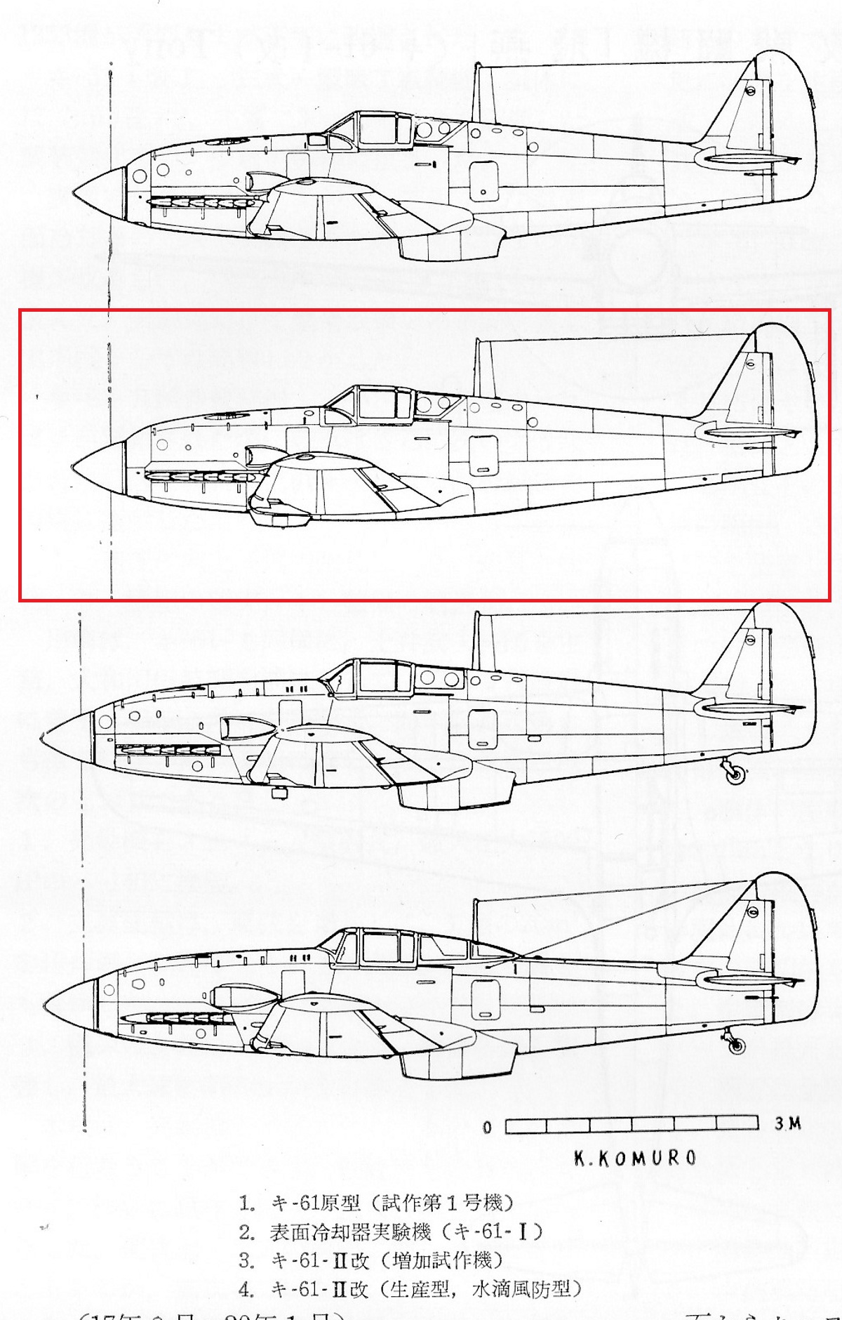 Comparison of the Experimental Kawasaki Ki-61-I with surface evaporation cooling system with other variants of Ki-61