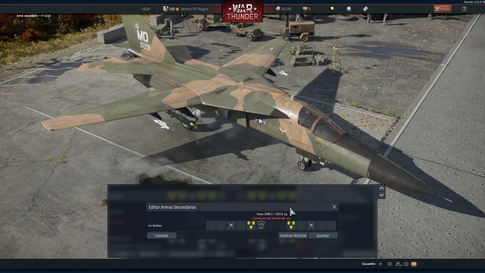 I need help in how to equip the payload of F-111A to make it usable in ARB.